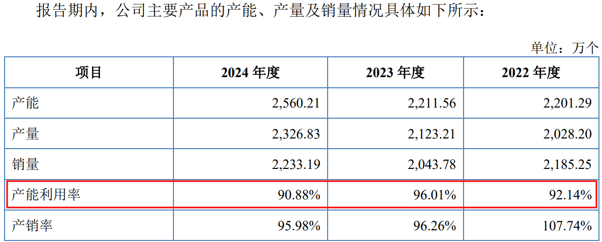 另外,尚研科技产能利用率由2023年的96.01%大幅下降至2024年的90.88%,下跌5个多百分点,募资扩产的必要性也值得商榷。